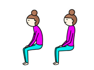 背筋を伸ばし、肩を後ろに引いて胸を開く姿勢を心がけてください。