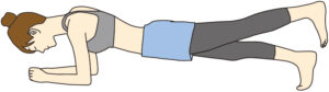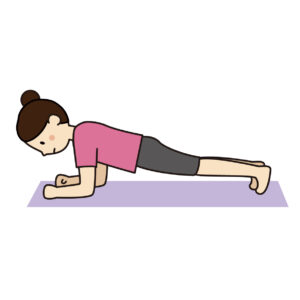 うつ伏せの状態から肘とつま先で体を支え、頭から足までを一直線に保ちます。