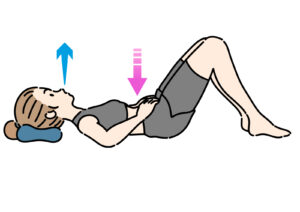 仰向けに寝て膝を立て、息を吐きながらお腹を凹ませ、その状態を30秒キープします。