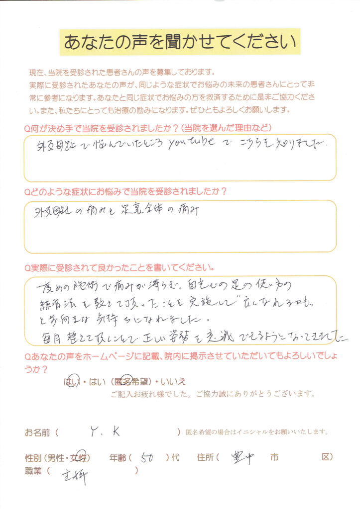 外反母趾で悩んでいたところYouTubeでこちらを知りました。
