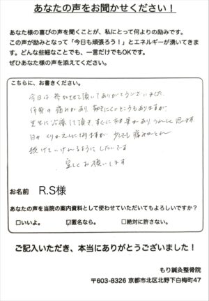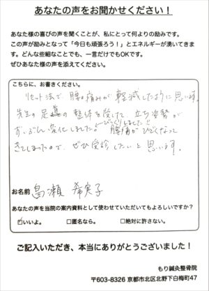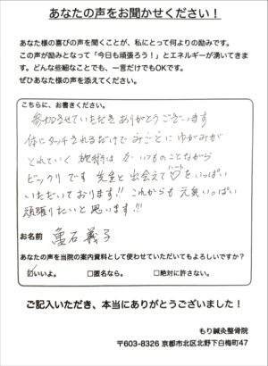 「先生に治療していただきすぐに効果があり嬉しく思います」