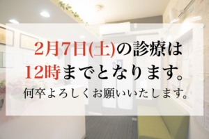 2月7日(土)の診療は12時までとなります