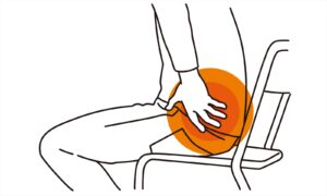 立つ時は両足に均等に体重をかけ、座る時は坐骨(ざこつ・お尻の骨の先端)左右均等椅子に当たるように意識してください。
