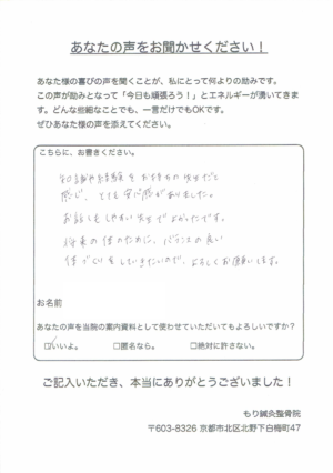 知識や経験をお持ちの先生だと感じ、とても安心感がありました。